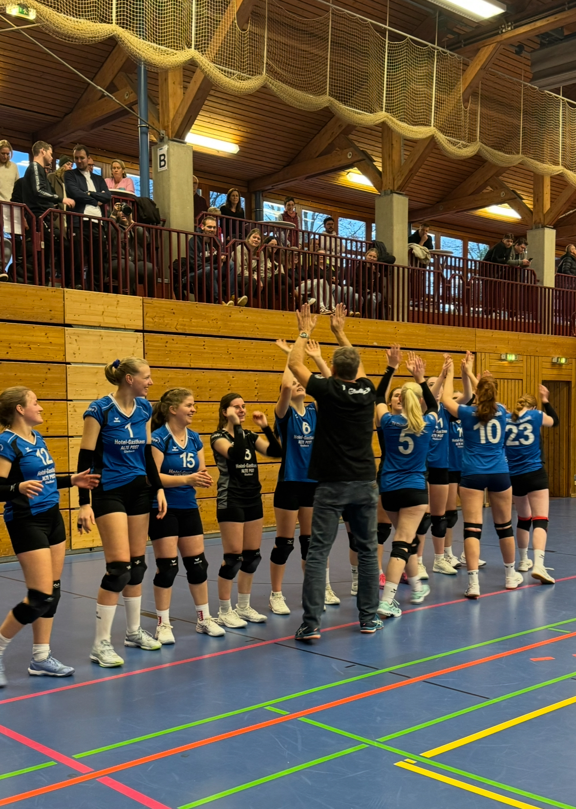 Mit diesem 3:1-Sieg sicherten wir uns nicht nur drei wichtige Punkte, sondern dank des für uns positiven Ausgangs im anschließenden Duell zwischen VC Marl und Post SV Buer auch die Rückkehr an die Tabellenspitze.