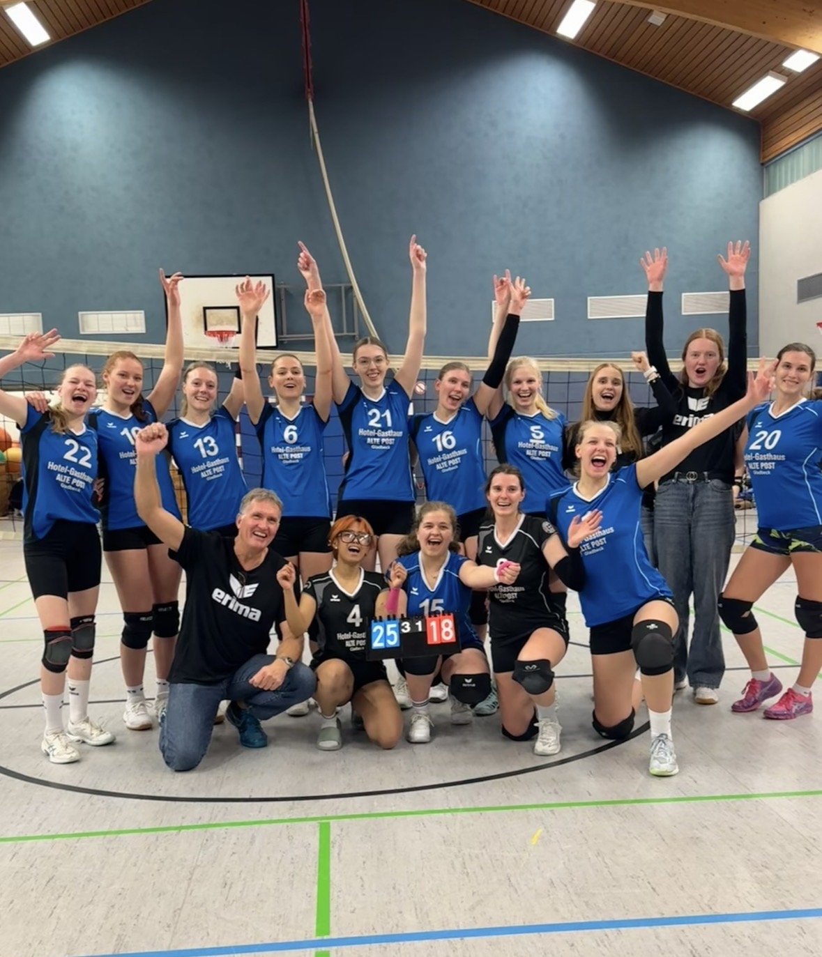Damit nahmen wir weitere wichtige drei Punkte mit nach Hause und bleiben knapp vor dem VC Marl an der Tabellenspitze. Den Sieg feierten wir anschließend gebührend bei einem Mannschaftsabend.