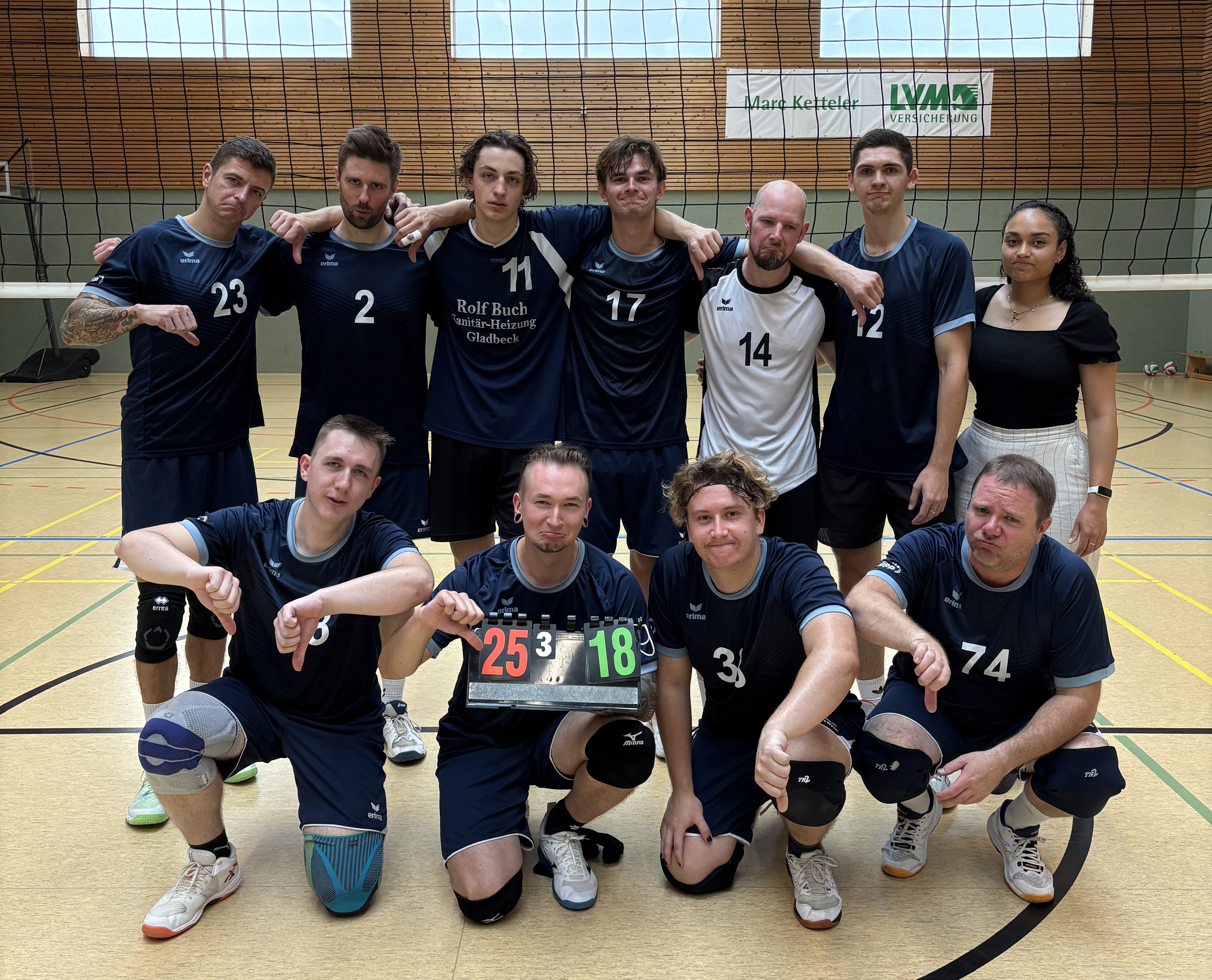 Nach anfänglicher Frustration und Erstaunen über den Ausgang des ersten Satzes wurde zunächst an der Aufstellung gefeilt. Durch taktische Verschiebungen in der Rotation wurden die Angriffe des Gegners entschärft, wodurch spannende Rallies zum mitfiebern entstanden. Das Debut von Jojo im Team der Herren 1 wurde durch sensationelle Blocks unterstrichen. Jedoch hat es am Ende nicht für den Satzpunkt gereicht, weshalb sich der TV Gladbeck mit 22:25 im zweiten Satz abfinden muss.